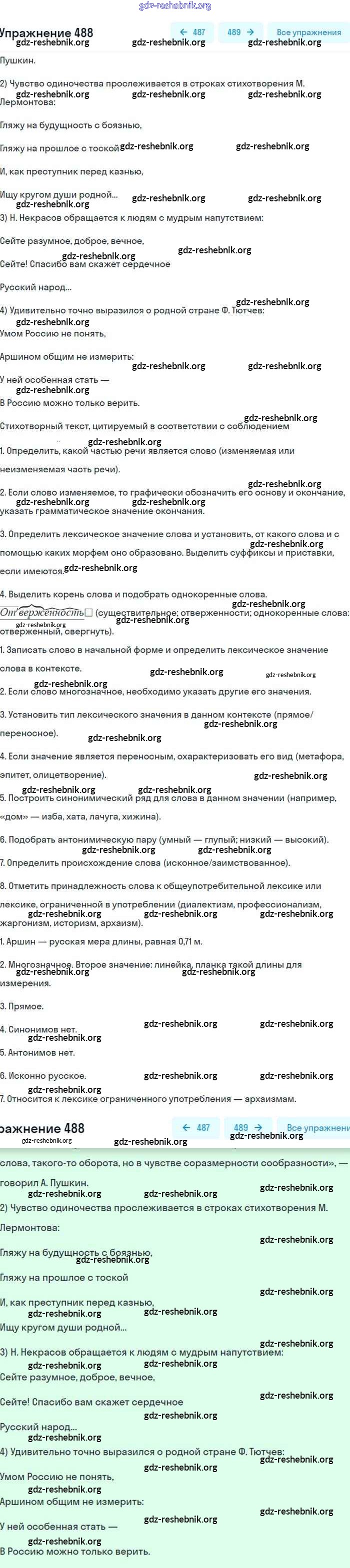 gdz-reshebnik.org - сайт готовых домашних заданий и решебников для школьников по Русскому языку для восьмого класса. Предоставляем готовые ответы на задания, авторские материалы к Учебнику Бархударов, Крючков - Упражнения 488 . Основная часть контента представлена в бесплатном онлайн-формате с удобным и простым интерфейсом.