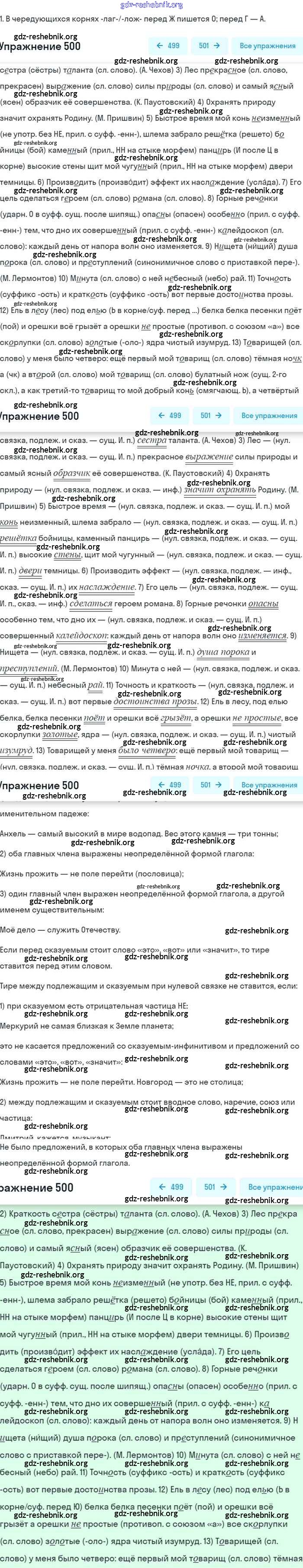 gdz-reshebnik.org - сайт готовых домашних заданий и решебников для школьников по Русскому языку для восьмого класса. Предоставляем готовые ответы на задания, авторские материалы к Учебнику Бархударов, Крючков - Упражнения 500 . Основная часть контента представлена в бесплатном онлайн-формате с удобным и простым интерфейсом.