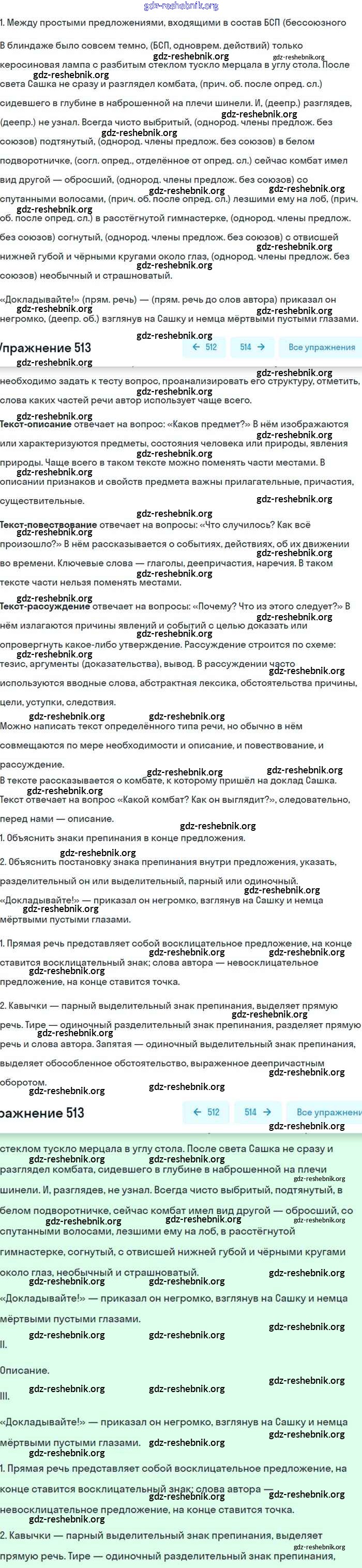 gdz-reshebnik.org - сайт готовых домашних заданий и решебников для школьников по Русскому языку для восьмого класса. Предоставляем готовые ответы на задания, авторские материалы к Учебнику Бархударов, Крючков - Упражнения 513 . Основная часть контента представлена в бесплатном онлайн-формате с удобным и простым интерфейсом.
