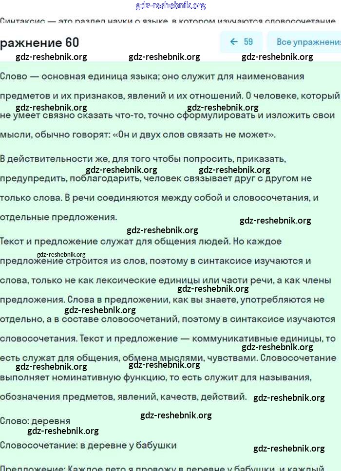 gdz-reshebnik.org - сайт готовых домашних заданий и решебников для школьников по Русскому языку для восьмого класса. Предоставляем готовые ответы на задания, авторские материалы к Учебнику Бархударов, Крючков - Упражнения 60 . Основная часть контента представлена в бесплатном онлайн-формате с удобным и простым интерфейсом.