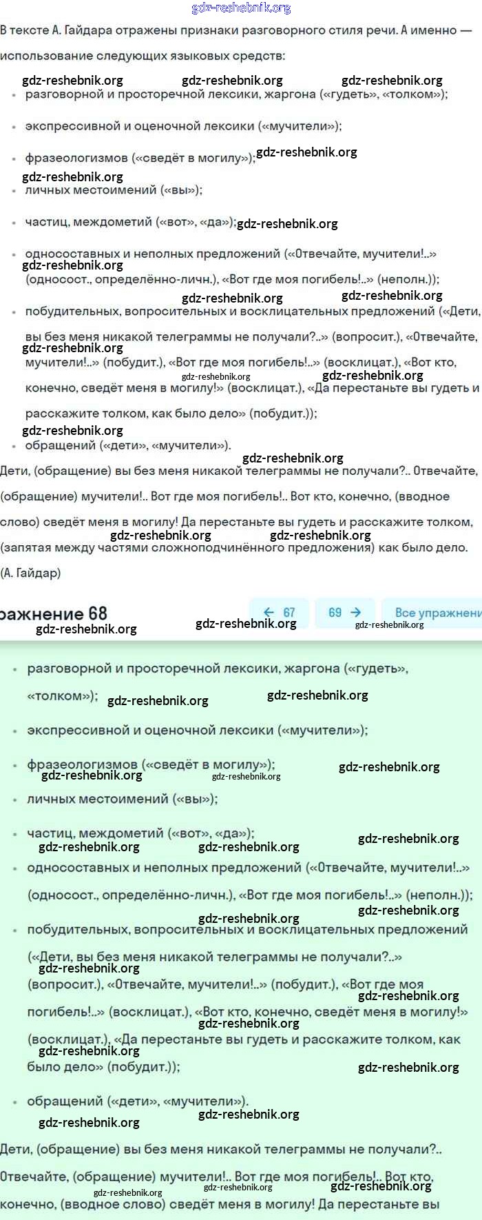 gdz-reshebnik.org - сайт готовых домашних заданий и решебников для школьников по Русскому языку для восьмого класса. Предоставляем готовые ответы на задания, авторские материалы к Учебнику Бархударов, Крючков - Упражнения 68 . Основная часть контента представлена в бесплатном онлайн-формате с удобным и простым интерфейсом.