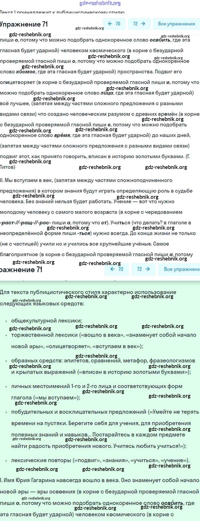 gdz-reshebnik.org - сайт готовых домашних заданий и решебников для школьников по Русскому языку для восьмого класса. Предоставляем готовые ответы на задания, авторские материалы к Учебнику Бархударов, Крючков - Упражнения 71 . Основная часть контента представлена в бесплатном онлайн-формате с удобным и простым интерфейсом.