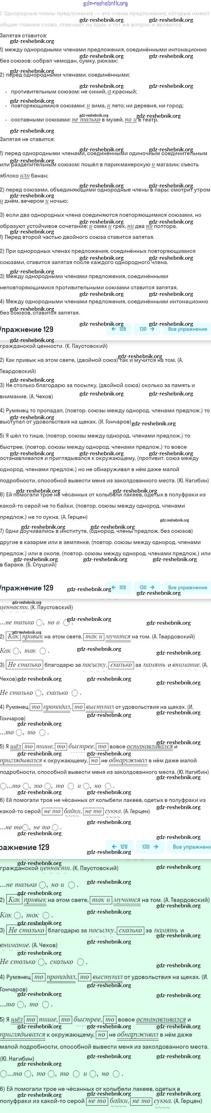 gdz-reshebnik.org - сайт готовых домашних заданий и решебников для школьников по Русскому языку для восьмого класса. Предоставляем готовые ответы на задания, авторские материалы к Рабочей тетради Литвинова Вертикаль - Упражнения 129 . Основная часть контента представлена в бесплатном онлайн-формате с удобным и простым интерфейсом.