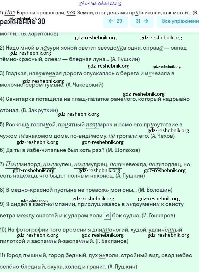 gdz-reshebnik.org - сайт готовых домашних заданий и решебников для школьников по Русскому языку для восьмого класса. Предоставляем готовые ответы на задания, авторские материалы к Рабочей тетради Литвинова Вертикаль - Упражнения 30 . Основная часть контента представлена в бесплатном онлайн-формате с удобным и простым интерфейсом.