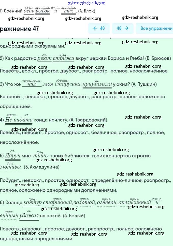 gdz-reshebnik.org - сайт готовых домашних заданий и решебников для школьников по Русскому языку для восьмого класса. Предоставляем готовые ответы на задания, авторские материалы к Рабочей тетради Литвинова Вертикаль - Упражнения 47 . Основная часть контента представлена в бесплатном онлайн-формате с удобным и простым интерфейсом.