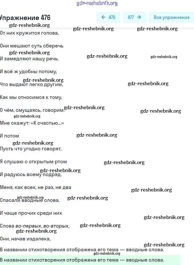 gdz-reshebnik.org - сайт готовых домашних заданий и решебников для школьников по Русскому языку для восьмого класса. Предоставляем готовые ответы на задания, авторские материалы к Практике Пичугов, Еремеева Вертикаль - Упражнения 476 . Основная часть контента представлена в бесплатном онлайн-формате с удобным и простым интерфейсом.
