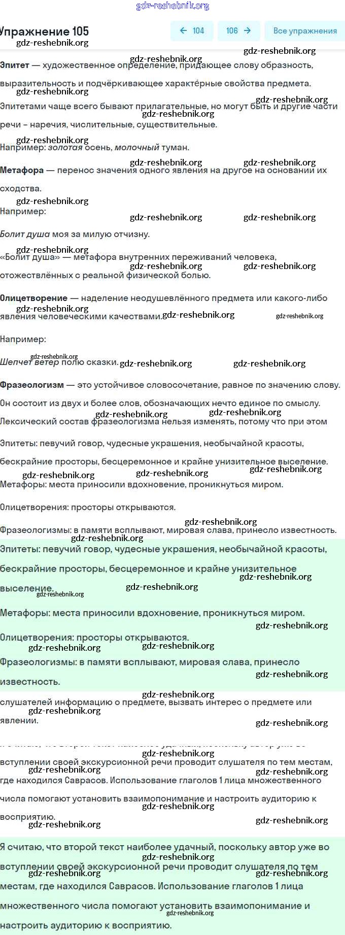 gdz-reshebnik.org - сайт готовых домашних заданий и решебников для школьников по Русскому языку для восьмого класса. Предоставляем готовые ответы на задания, авторские материалы к Учебнику Рыбченкова, Александрова УМК - Упражнения 105 . Основная часть контента представлена в бесплатном онлайн-формате с удобным и простым интерфейсом.