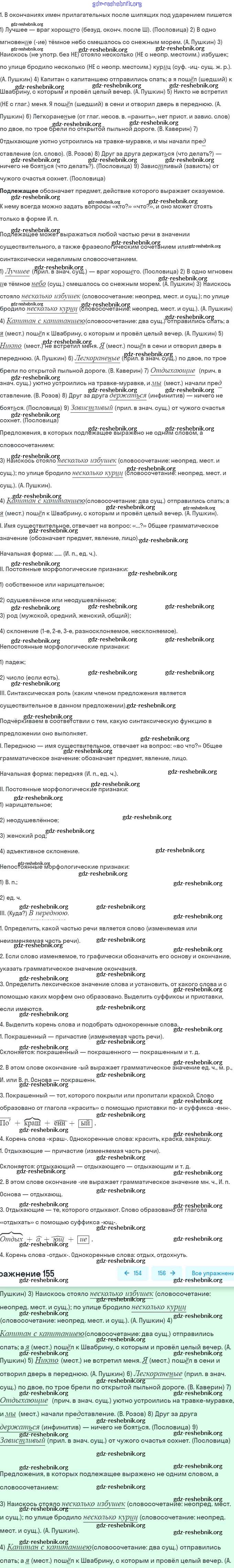 gdz-reshebnik.org - сайт готовых домашних заданий и решебников для школьников по Русскому языку для восьмого класса. Предоставляем готовые ответы на задания, авторские материалы к Учебнику Рыбченкова, Александрова УМК - Упражнения 155 . Основная часть контента представлена в бесплатном онлайн-формате с удобным и простым интерфейсом.