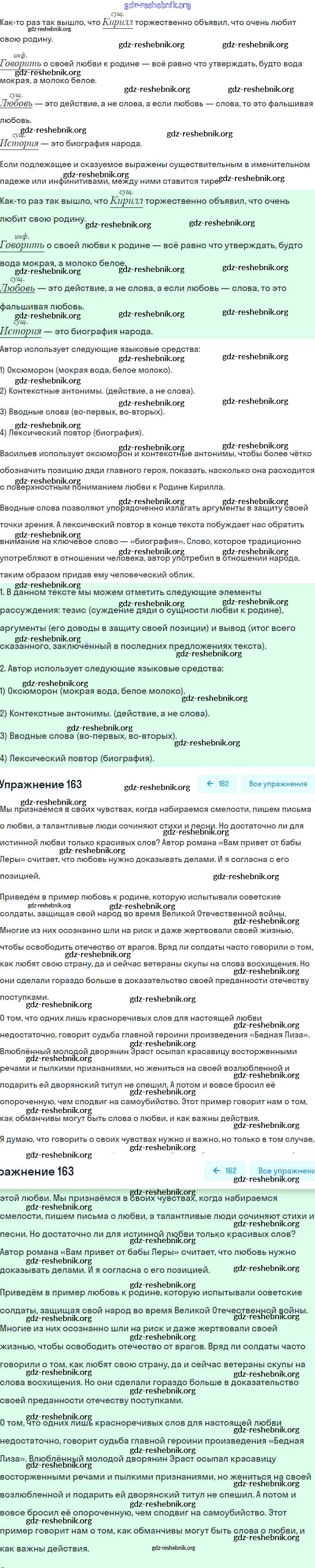 ГДЗ решебники Учебник по Русскому языку 8 класс Рыбченкова, Александрова УМК - Упражнения 163