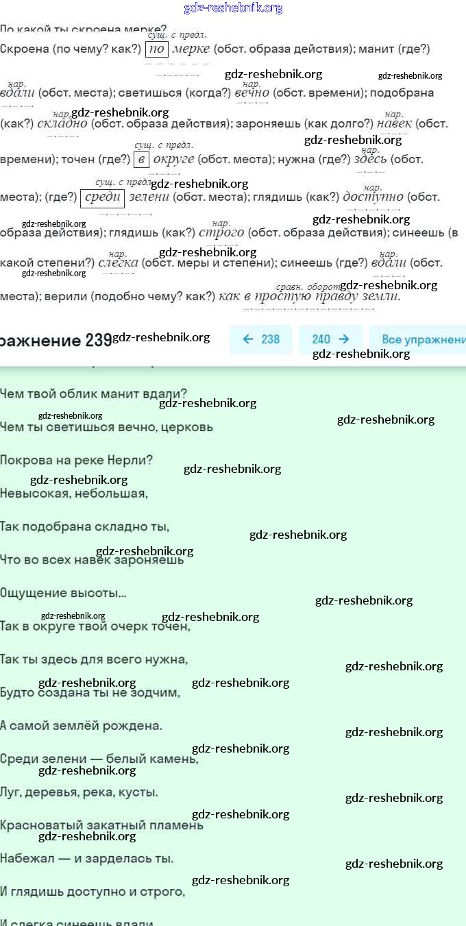 gdz-reshebnik.org - сайт готовых домашних заданий и решебников для школьников по Русскому языку для восьмого класса. Предоставляем готовые ответы на задания, авторские материалы к Учебнику Рыбченкова, Александрова УМК - Упражнения 239 . Основная часть контента представлена в бесплатном онлайн-формате с удобным и простым интерфейсом.