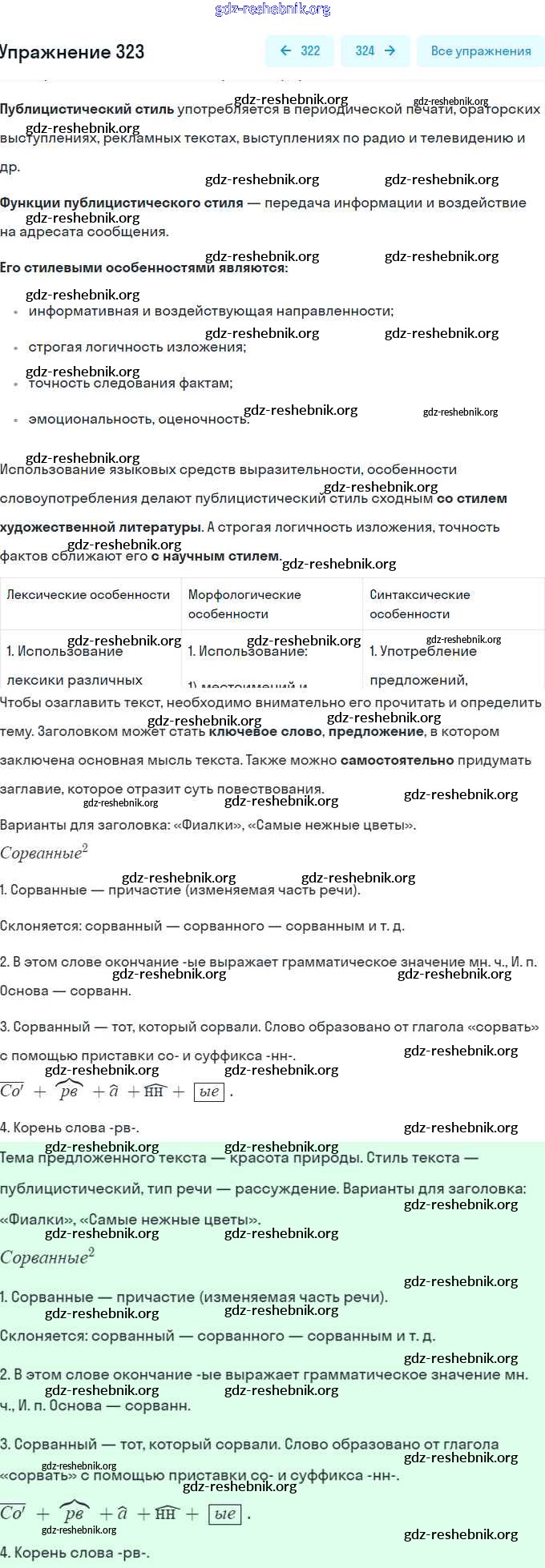 gdz-reshebnik.org - сайт готовых домашних заданий и решебников для школьников по Русскому языку для восьмого класса. Предоставляем готовые ответы на задания, авторские материалы к Учебнику Рыбченкова, Александрова УМК - Упражнения 323 . Основная часть контента представлена в бесплатном онлайн-формате с удобным и простым интерфейсом.