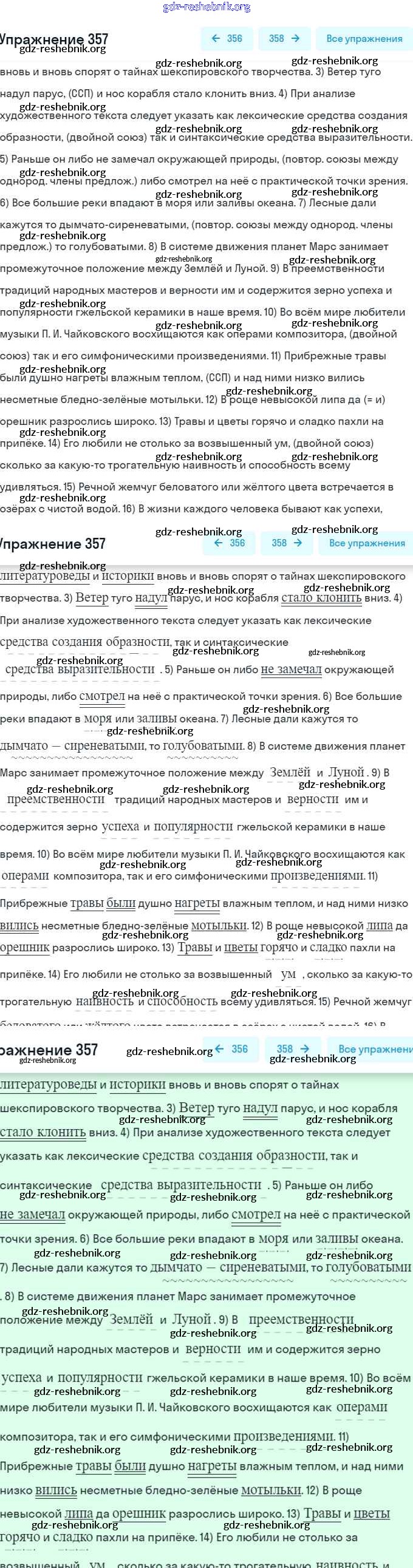 gdz-reshebnik.org - сайт готовых домашних заданий и решебников для школьников по Русскому языку для восьмого класса. Предоставляем готовые ответы на задания, авторские материалы к Учебнику Рыбченкова, Александрова УМК - Упражнения 357 . Основная часть контента представлена в бесплатном онлайн-формате с удобным и простым интерфейсом.