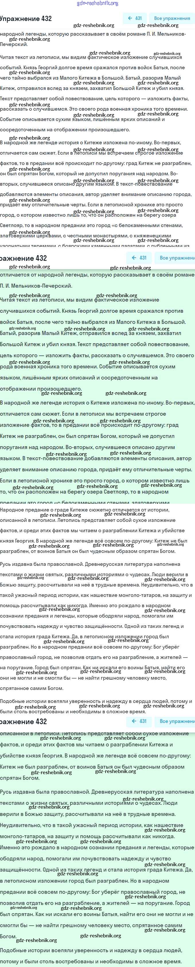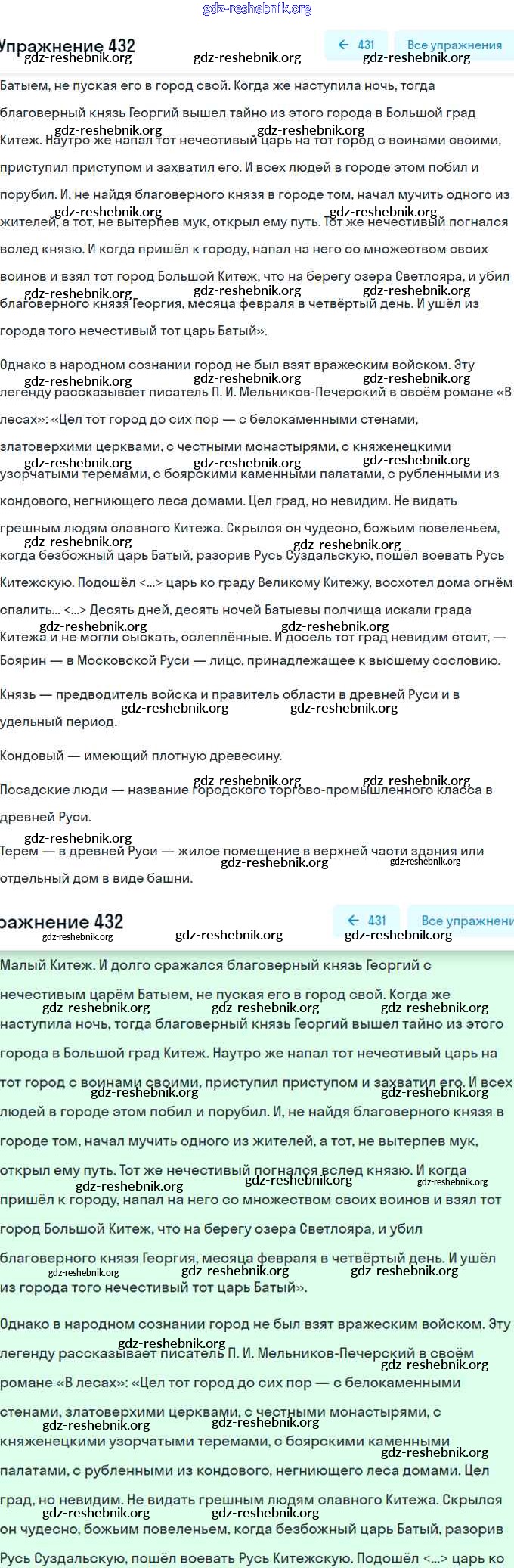 ГДЗ решебники Учебник по Русскому языку 8 класс Рыбченкова, Александрова УМК - Упражнения 432