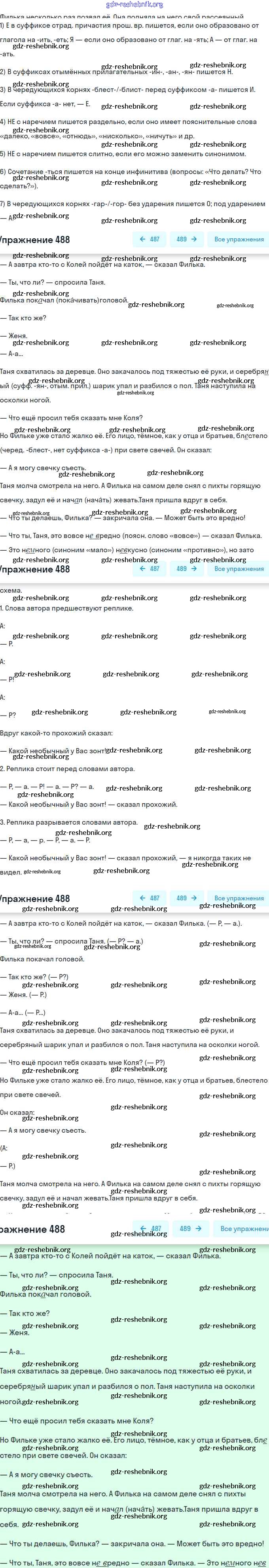 ГДЗ решебники Учебник по Русскому языку 8 класс Рыбченкова, Александрова УМК - Упражнения 488