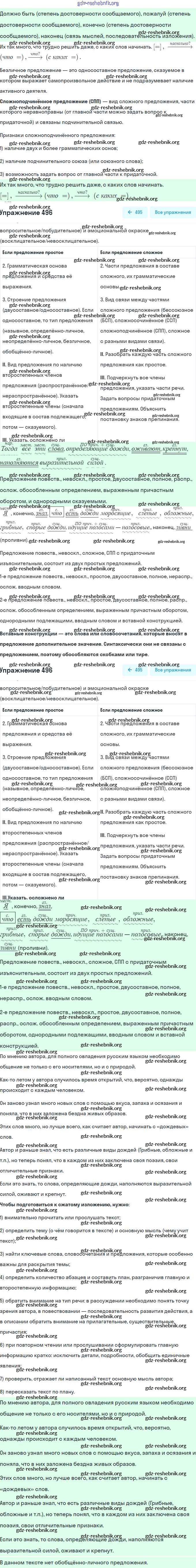 gdz-reshebnik.org - сайт готовых домашних заданий и решебников для школьников по Русскому языку для восьмого класса. Предоставляем готовые ответы на задания, авторские материалы к Учебнику Рыбченкова, Александрова УМК - Упражнения 496 . Основная часть контента представлена в бесплатном онлайн-формате с удобным и простым интерфейсом.