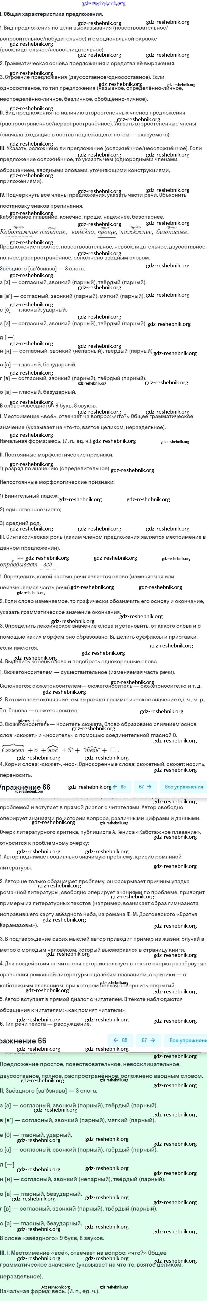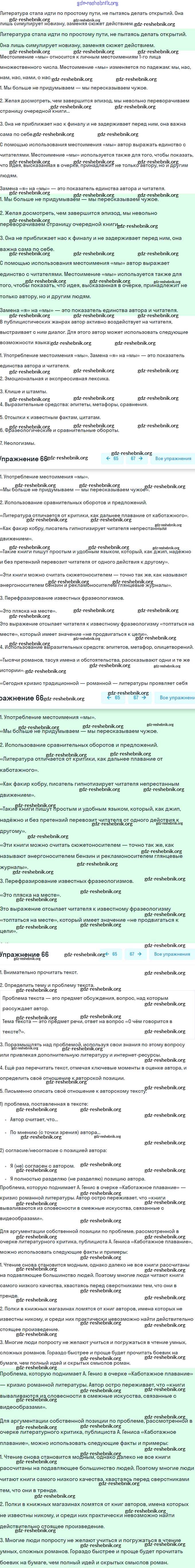 gdz-reshebnik.org - сайт готовых домашних заданий и решебников для школьников по Русскому языку для восьмого класса. Предоставляем готовые ответы на задания, авторские материалы к Учебнику Рыбченкова, Александрова УМК - Упражнения 66 . Основная часть контента представлена в бесплатном онлайн-формате с удобным и простым интерфейсом.