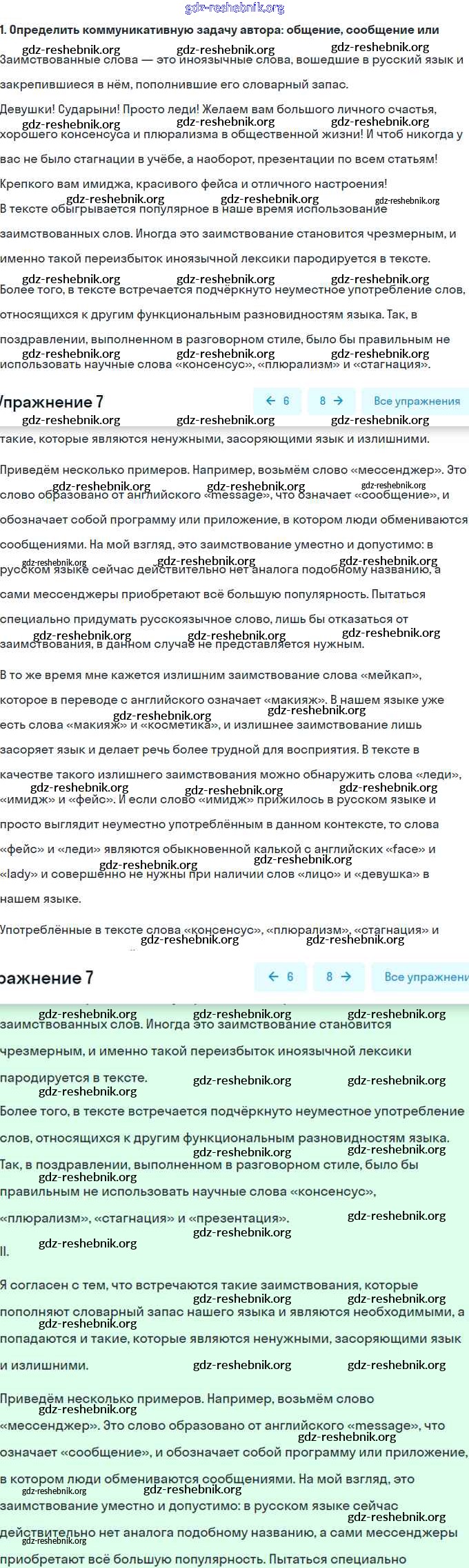 ГДЗ решебники Учебник по Русскому языку 8 класс Рыбченкова, Александрова УМК - Упражнения 7