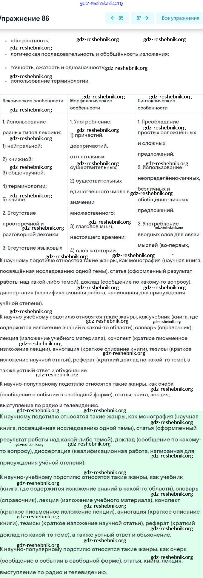 gdz-reshebnik.org - сайт готовых домашних заданий и решебников для школьников по Русскому языку для восьмого класса. Предоставляем готовые ответы на задания, авторские материалы к Учебнику Рыбченкова, Александрова УМК - Упражнения 86 . Основная часть контента представлена в бесплатном онлайн-формате с удобным и простым интерфейсом.