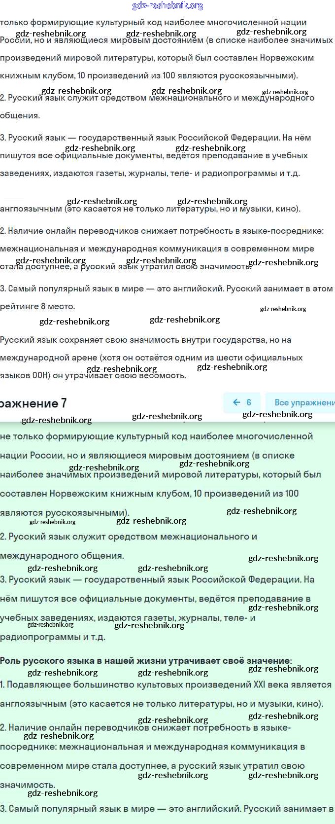 ГДЗ решебники Учебник по Русскому языку 8 класс Шмелёв, Флоренская Алгоритм успеха - Глава 3. Роль русского языка в Российской Федерации 7