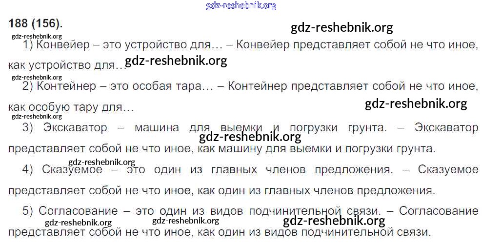 gdz-reshebnik.org - сайт готовых домашних заданий и решебников для школьников по Русскому языку для восьмого класса. Предоставляем готовые ответы на задания, авторские материалы к Учебнику Бархударов, Крючков - Упражнения 188 . Основная часть контента представлена в бесплатном онлайн-формате с удобным и простым интерфейсом.