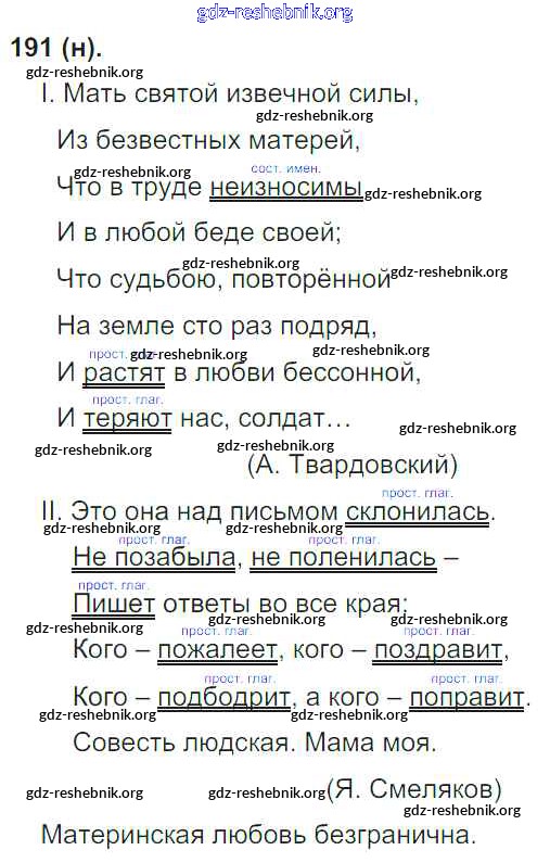 gdz-reshebnik.org - сайт готовых домашних заданий и решебников для школьников по Русскому языку для восьмого класса. Предоставляем готовые ответы на задания, авторские материалы к Учебнику Бархударов, Крючков - Упражнения 191 . Основная часть контента представлена в бесплатном онлайн-формате с удобным и простым интерфейсом.