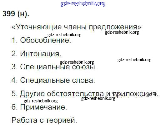 gdz-reshebnik.org - сайт готовых домашних заданий и решебников для школьников по Русскому языку для восьмого класса. Предоставляем готовые ответы на задания, авторские материалы к Учебнику Бархударов, Крючков - Упражнения 399 . Основная часть контента представлена в бесплатном онлайн-формате с удобным и простым интерфейсом.