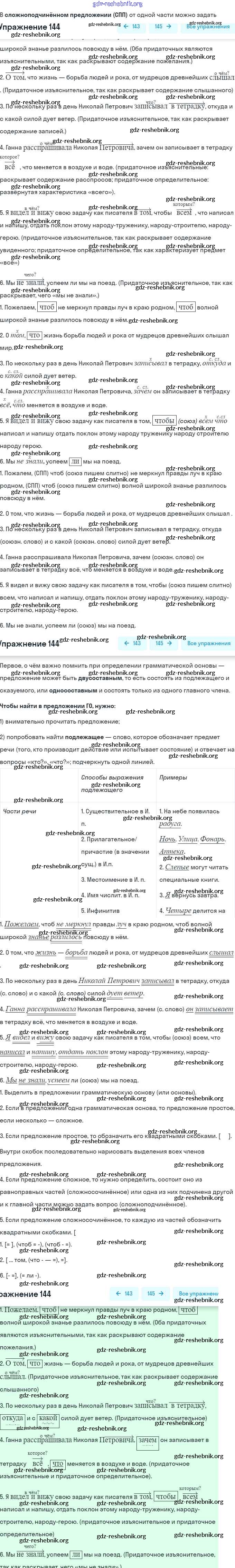 gdz-reshebnik.org - сайт готовых домашних заданий и решебников для школьников по Русскому языку для девятого класса. Предоставляем готовые ответы на задания, авторские материалы к Учебнику Бархударов, Крючков - Упражнения 144 . Основная часть контента представлена в бесплатном онлайн-формате с удобным и простым интерфейсом.