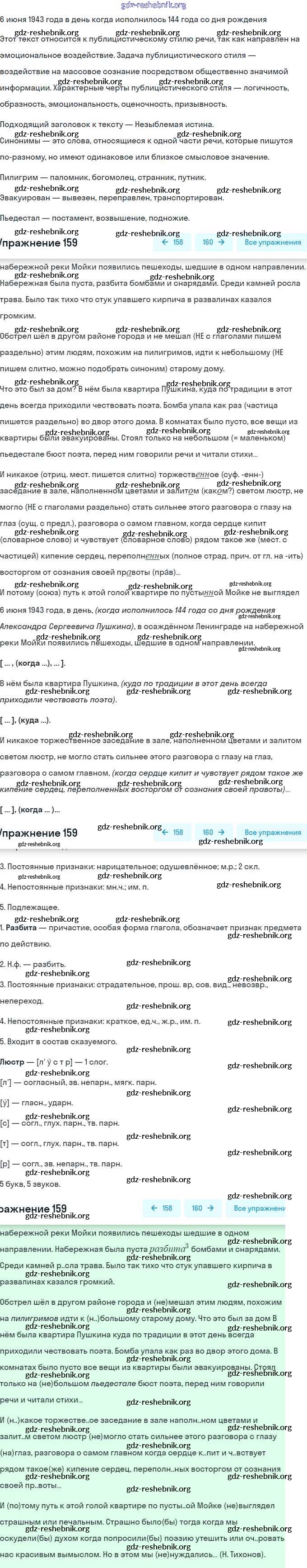 gdz-reshebnik.org - сайт готовых домашних заданий и решебников для школьников по Русскому языку для девятого класса. Предоставляем готовые ответы на задания, авторские материалы к Учебнику Бархударов, Крючков - Упражнения 159 . Основная часть контента представлена в бесплатном онлайн-формате с удобным и простым интерфейсом.