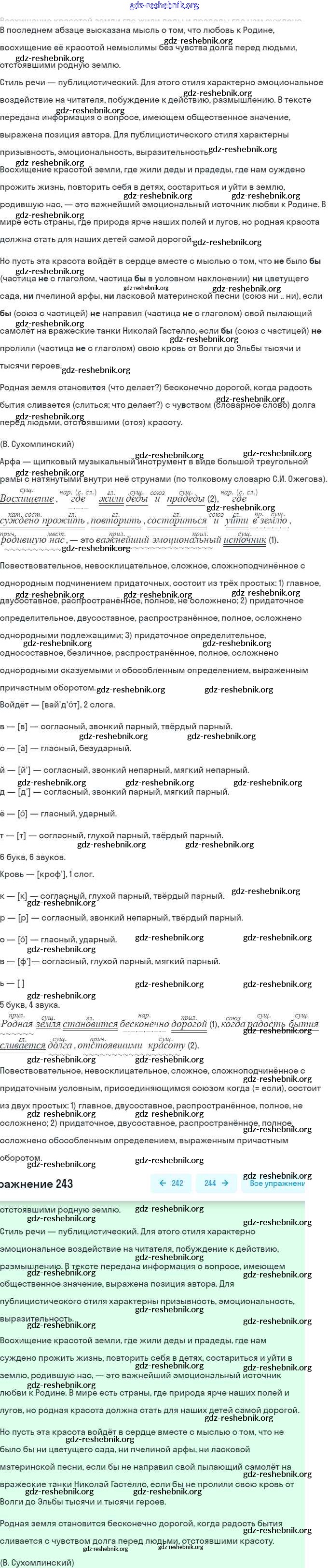 gdz-reshebnik.org - сайт готовых домашних заданий и решебников для школьников по Русскому языку для девятого класса. Предоставляем готовые ответы на задания, авторские материалы к Учебнику Бархударов, Крючков - Упражнения 243 . Основная часть контента представлена в бесплатном онлайн-формате с удобным и простым интерфейсом.
