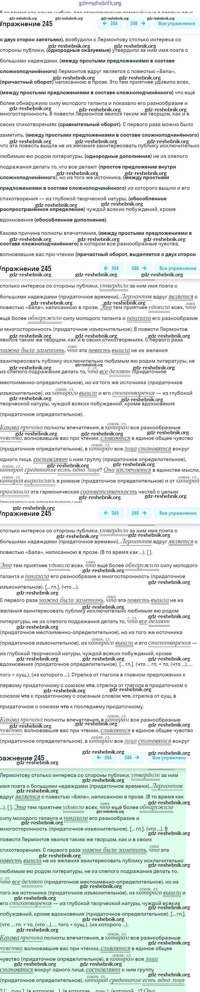 gdz-reshebnik.org - сайт готовых домашних заданий и решебников для школьников по Русскому языку для девятого класса. Предоставляем готовые ответы на задания, авторские материалы к Учебнику Бархударов, Крючков - Упражнения 245 . Основная часть контента представлена в бесплатном онлайн-формате с удобным и простым интерфейсом.