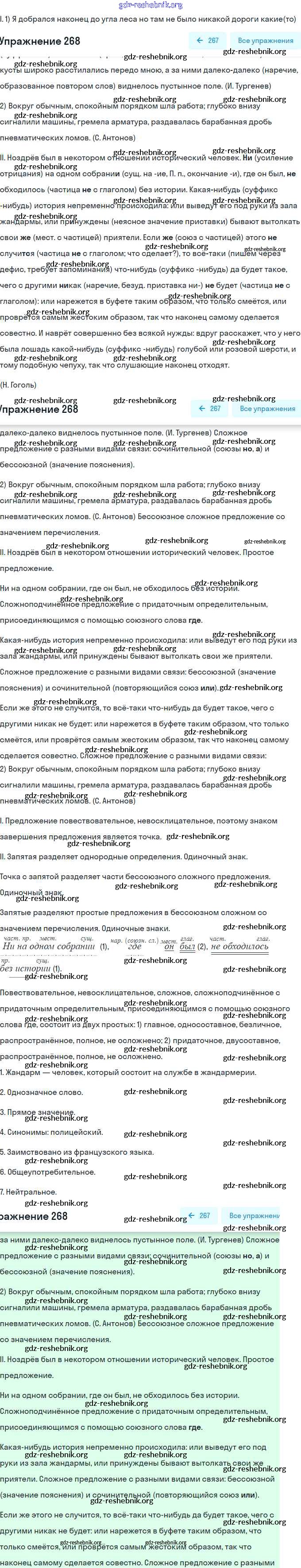 gdz-reshebnik.org - сайт готовых домашних заданий и решебников для школьников по Русскому языку для девятого класса. Предоставляем готовые ответы на задания, авторские материалы к Учебнику Бархударов, Крючков - Упражнения 268 . Основная часть контента представлена в бесплатном онлайн-формате с удобным и простым интерфейсом.