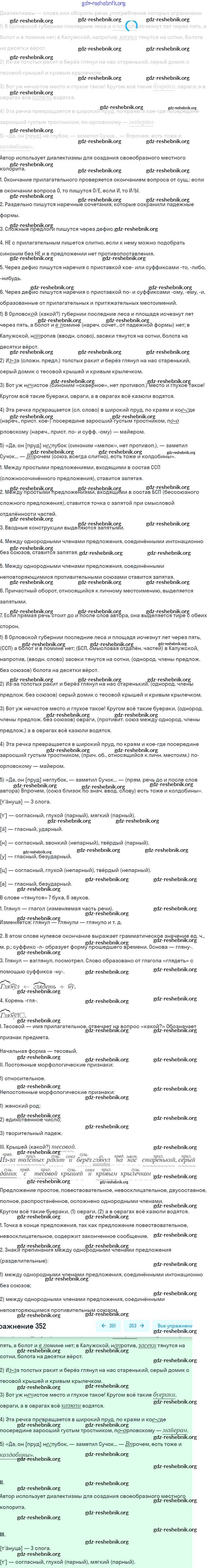 gdz-reshebnik.org - сайт готовых домашних заданий и решебников для школьников по Русскому языку для девятого класса. Предоставляем готовые ответы на задания, авторские материалы к Учебнику Бархударов, Крючков - Упражнения 352 . Основная часть контента представлена в бесплатном онлайн-формате с удобным и простым интерфейсом.