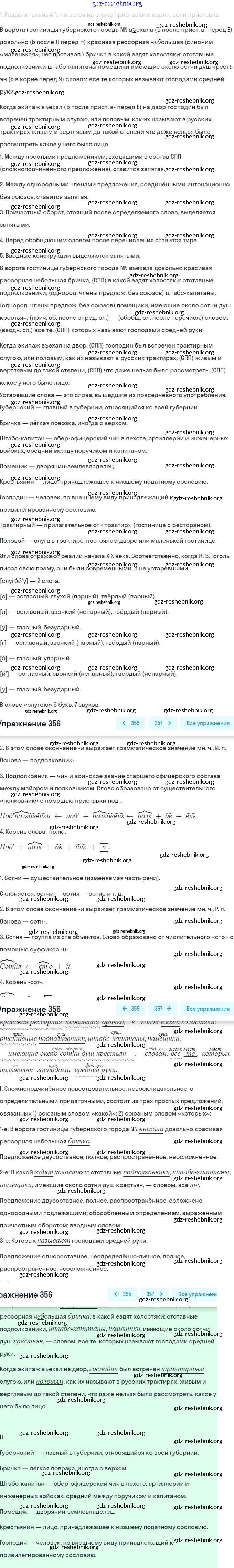 gdz-reshebnik.org - сайт готовых домашних заданий и решебников для школьников по Русскому языку для девятого класса. Предоставляем готовые ответы на задания, авторские материалы к Учебнику Бархударов, Крючков - Упражнения 356 . Основная часть контента представлена в бесплатном онлайн-формате с удобным и простым интерфейсом.