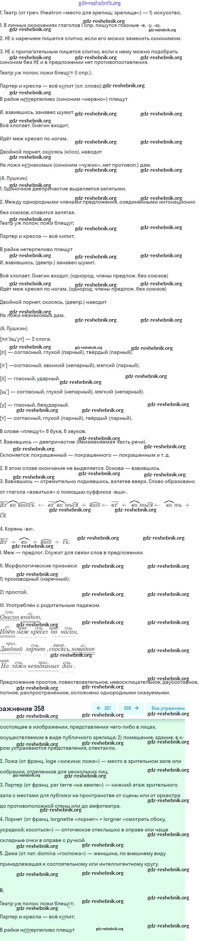 gdz-reshebnik.org - сайт готовых домашних заданий и решебников для школьников по Русскому языку для девятого класса. Предоставляем готовые ответы на задания, авторские материалы к Учебнику Бархударов, Крючков - Упражнения 358 . Основная часть контента представлена в бесплатном онлайн-формате с удобным и простым интерфейсом.