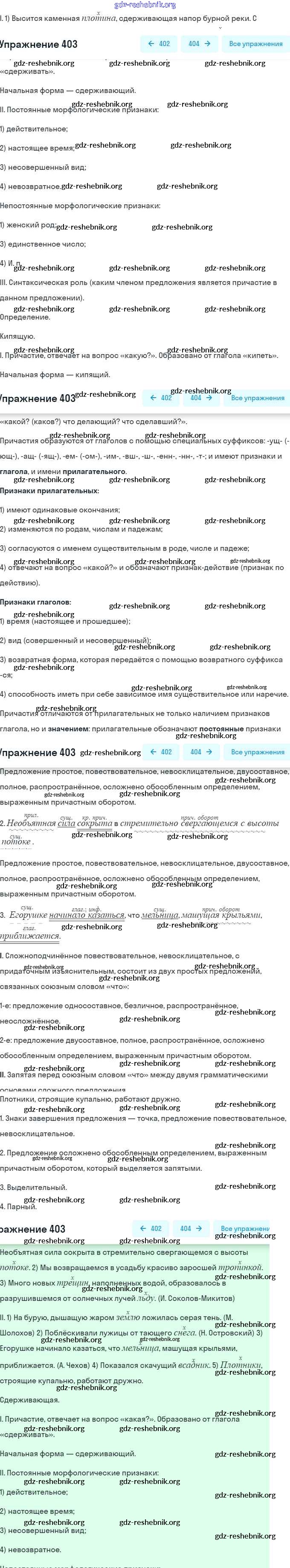 gdz-reshebnik.org - сайт готовых домашних заданий и решебников для школьников по Русскому языку для девятого класса. Предоставляем готовые ответы на задания, авторские материалы к Учебнику Бархударов, Крючков - Упражнения 403 . Основная часть контента представлена в бесплатном онлайн-формате с удобным и простым интерфейсом.