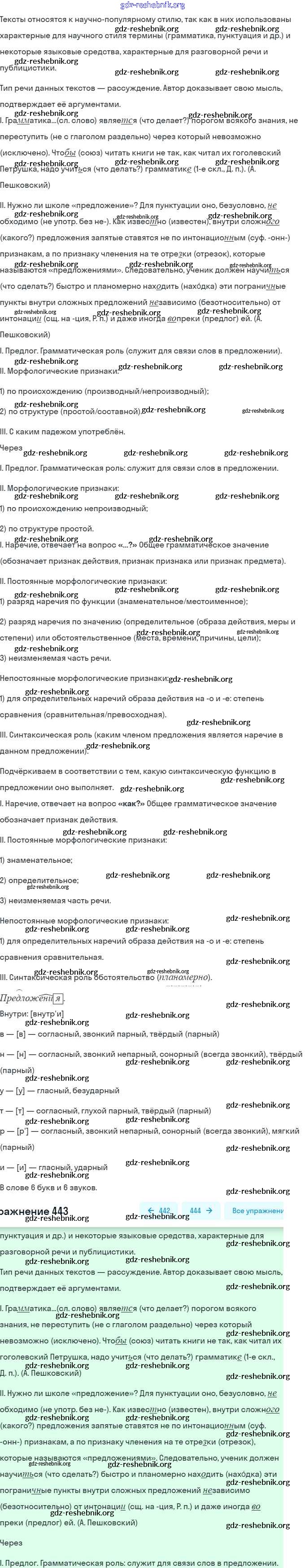 gdz-reshebnik.org - сайт готовых домашних заданий и решебников для школьников по Русскому языку для девятого класса. Предоставляем готовые ответы на задания, авторские материалы к Учебнику Бархударов, Крючков - Упражнения 443 . Основная часть контента представлена в бесплатном онлайн-формате с удобным и простым интерфейсом.