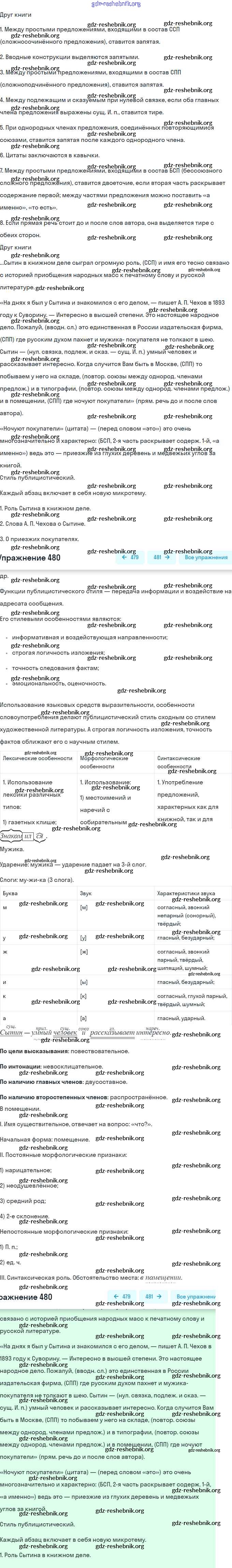 gdz-reshebnik.org - сайт готовых домашних заданий и решебников для школьников по Русскому языку для девятого класса. Предоставляем готовые ответы на задания, авторские материалы к Учебнику Бархударов, Крючков - Упражнения 480 . Основная часть контента представлена в бесплатном онлайн-формате с удобным и простым интерфейсом.