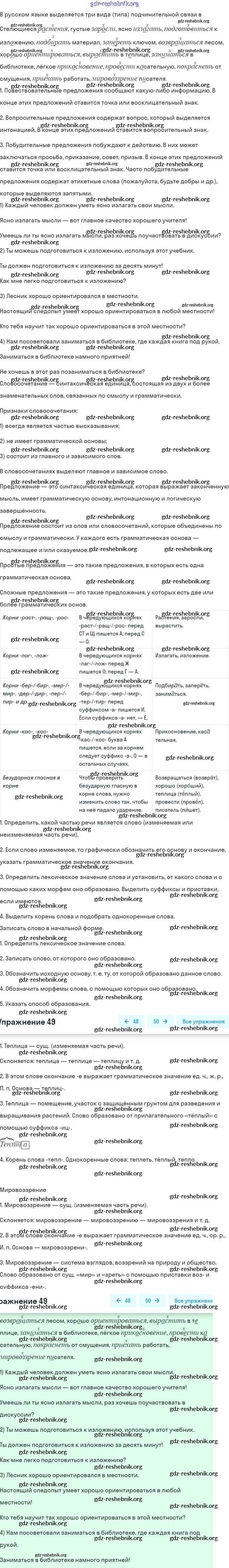 gdz-reshebnik.org - сайт готовых домашних заданий и решебников для школьников по Русскому языку для девятого класса. Предоставляем готовые ответы на задания, авторские материалы к Учебнику Бархударов, Крючков - Упражнения 49 . Основная часть контента представлена в бесплатном онлайн-формате с удобным и простым интерфейсом.