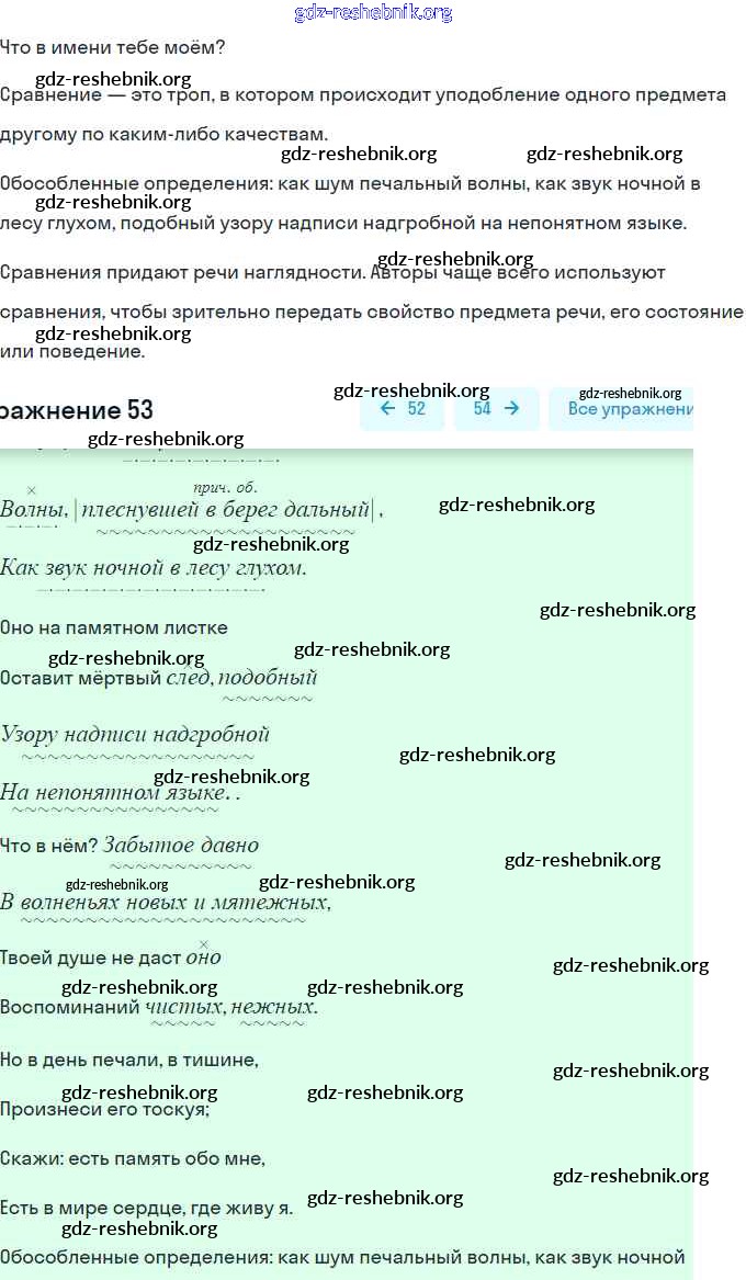 gdz-reshebnik.org - сайт готовых домашних заданий и решебников для школьников по Русскому языку для девятого класса. Предоставляем готовые ответы на задания, авторские материалы к Учебнику Бархударов, Крючков - Упражнения 53 . Основная часть контента представлена в бесплатном онлайн-формате с удобным и простым интерфейсом.