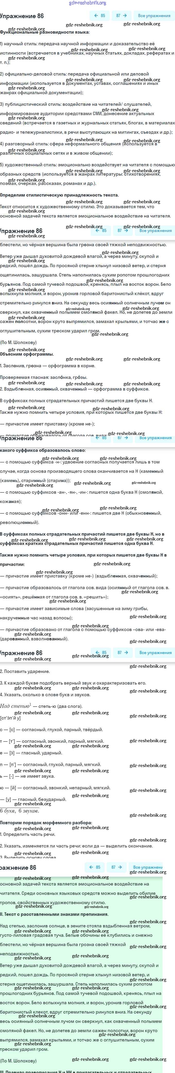 gdz-reshebnik.org - сайт готовых домашних заданий и решебников для школьников по Русскому языку для девятого класса. Предоставляем готовые ответы на задания, авторские материалы к Учебнику Бархударов, Крючков - Упражнения 86 . Основная часть контента представлена в бесплатном онлайн-формате с удобным и простым интерфейсом.