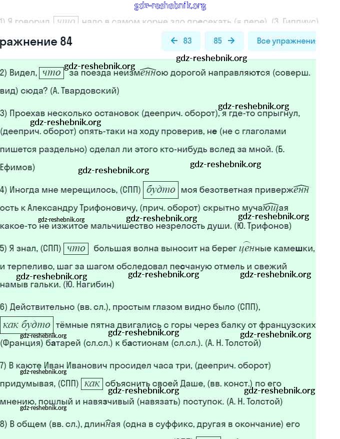 gdz-reshebnik.org - сайт готовых домашних заданий и решебников для школьников по Русскому языку для девятого класса. Предоставляем готовые ответы на задания, авторские материалы к Рабочей тетради Литвинова Вертикаль - Упражнения 84 . Основная часть контента представлена в бесплатном онлайн-формате с удобным и простым интерфейсом.