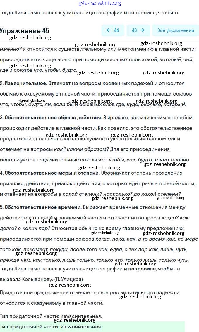 контрольная работа / сложноподчинённое предложение / вариант 1 / 45