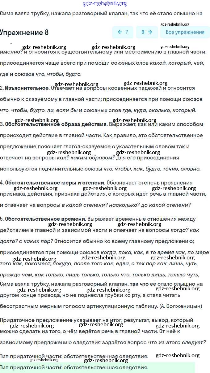 контрольная работа / сложноподчинённое предложение / вариант 1 / 8