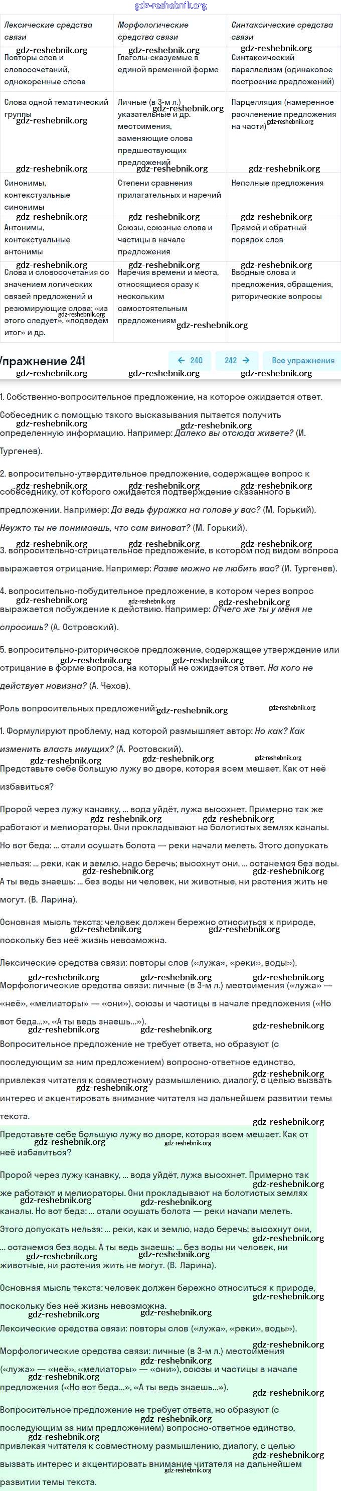 gdz-reshebnik.org - сайт готовых домашних заданий и решебников для школьников по Русскому языку для девятого класса. Предоставляем готовые ответы на задания, авторские материалы к Практике Пичугов, Еремеева - Упражнения 241 . Основная часть контента представлена в бесплатном онлайн-формате с удобным и простым интерфейсом.