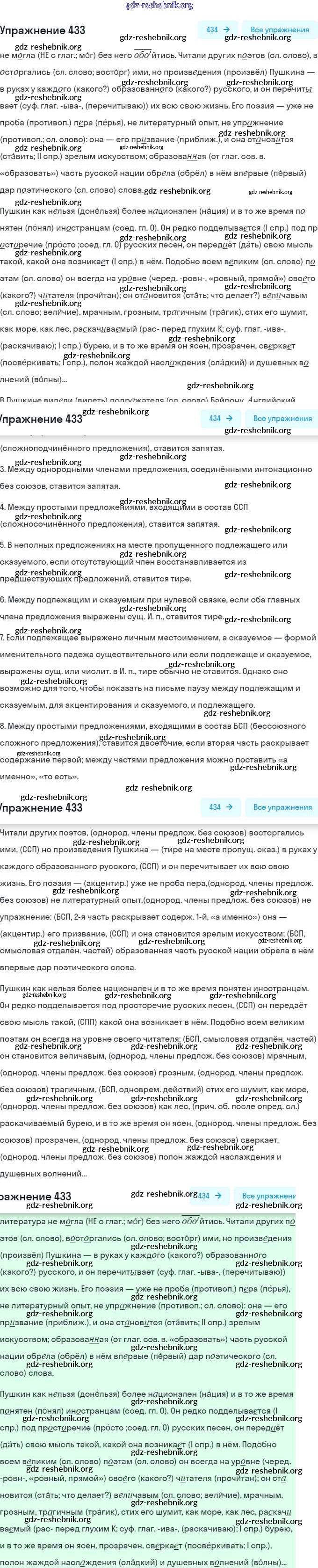 gdz-reshebnik.org - сайт готовых домашних заданий и решебников для школьников по Русскому языку для девятого класса. Предоставляем готовые ответы на задания, авторские материалы к Практике Пичугов, Еремеева - Упражнения 433 . Основная часть контента представлена в бесплатном онлайн-формате с удобным и простым интерфейсом.