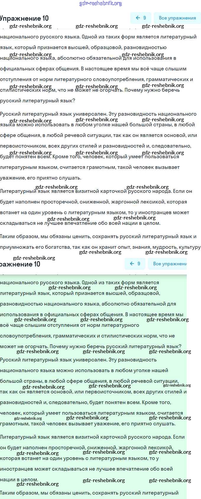ГДЗ решебники Учебник по Русскому языку 9 класс Рыбченкова, Александрова УМК - Упражнения 10