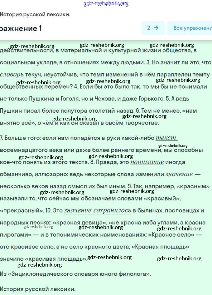 gdz-reshebnik.org - сайт готовых домашних заданий и решебников для школьников по Русскому языку для девятого класса. Предоставляем готовые ответы на задания, авторские материалы к Рабочей тетради Загоровская, Чаплыгина Часть 1, 2 - §1. Русский язык как развивающееся явление 1 . Основная часть контента представлена в бесплатном онлайн-формате с удобным и простым интерфейсом.