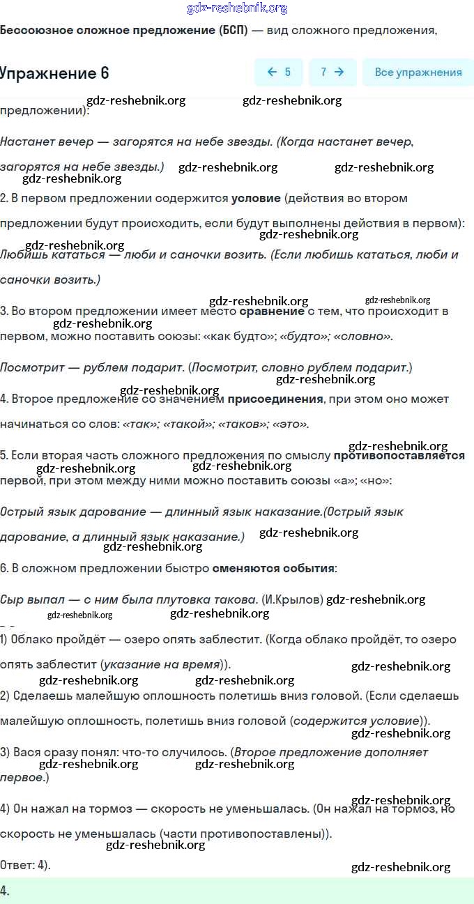 итоговый тест по теме «бессоюзное сложное предложение» / вариант 2 / 6