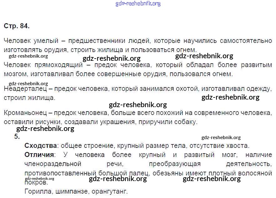 gdz-reshebnik.org - сайт готовых домашних заданий и решебников для школьников по Естествознанию для пятого класса. Предоставляем готовые ответы на задания, авторские материалы к Рабочей тетради Плешаков, Сонин Вертикаль - Страницы 84 . Основная часть контента представлена в бесплатном онлайн-формате с удобным и простым интерфейсом.